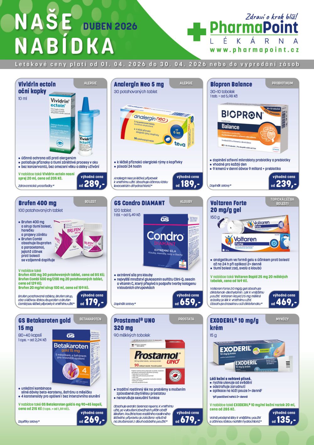 v tomto období probíhá v lékárnách PharmaPoint letáková nabídka, při které si můžete zakoupit vybrané produkty za výhodné ceny.